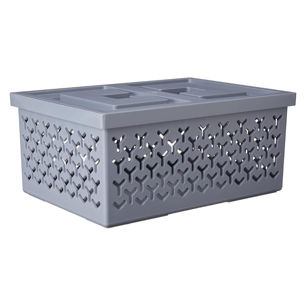 Cesto Organizador com Tampa M - Cinza - Crippa